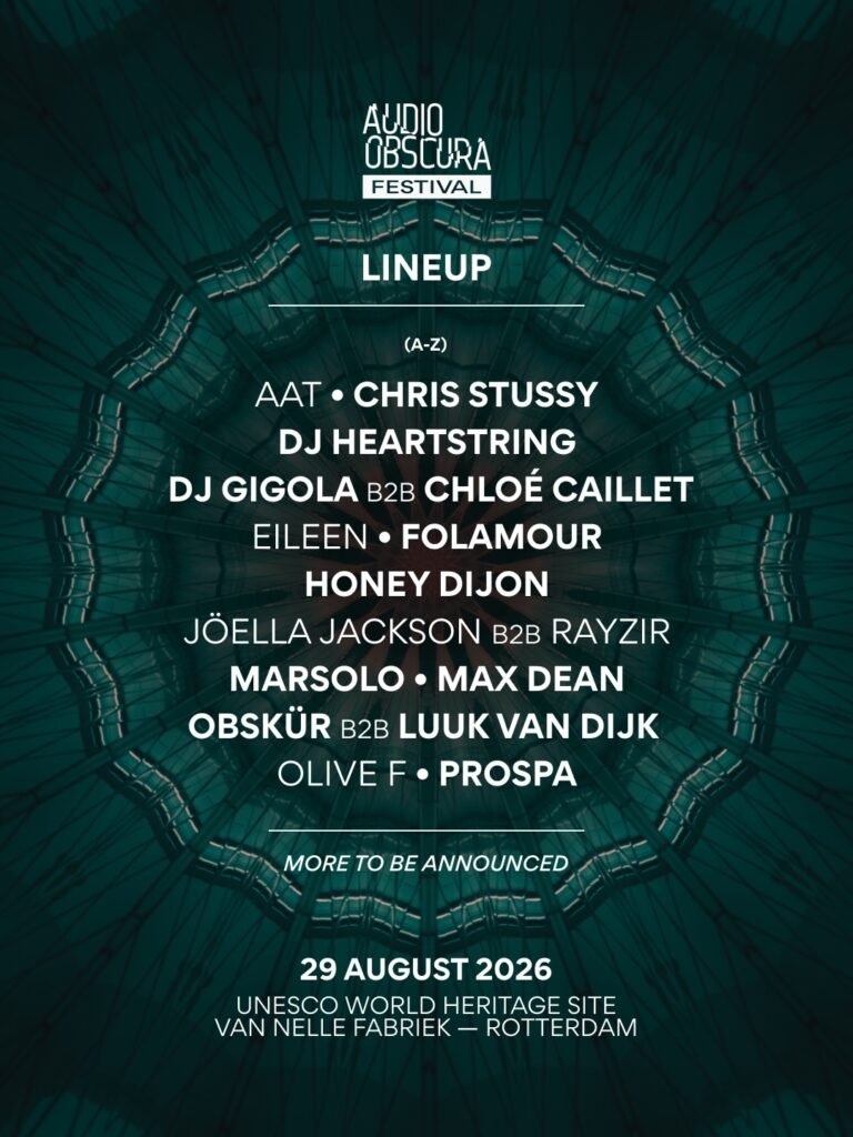 Pioneering, boundary-breaking electronic events producer Audio Obscura announces the return of its flagship Audio Obscura Festival at the UNESCO World Heritage site Van Nelle Factory in Rotterdam. Following its completely sold-out first edition in 2024 the one-off, open-air showcase returns in 2026, marking the next chapter in Audio Obscura’s development as a truly unique cultural platform.