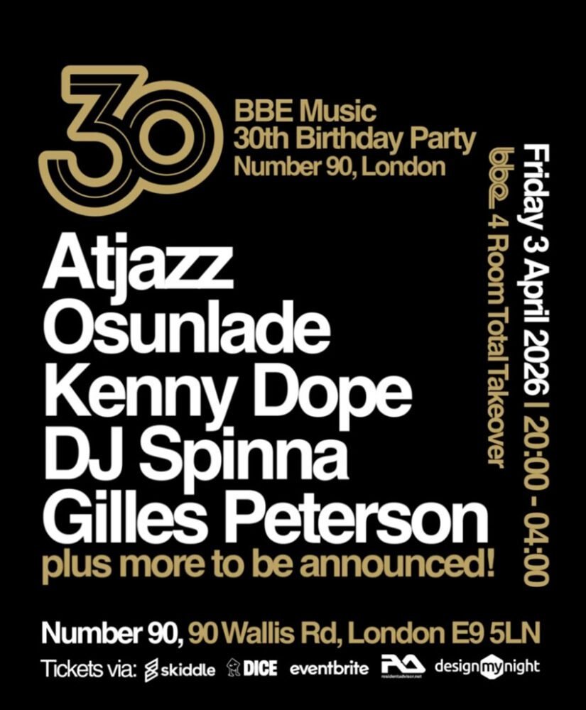 Legendary UK label and promoter BBE is celebrating three decades in the game with a special event in London this spring. The anniversary party will take place on April 3rd, 2026, at Hackney Wick’s Number 90.