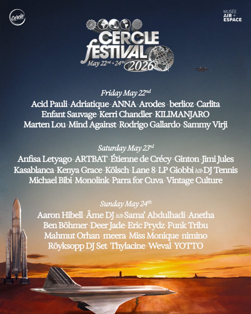 Cercle is proud to unveil the full lineup for the third edition of Cercle Festival at the National Air and Space Museum of France, now spanning three days, May 22–24, 2026. Set against the museum’s legendary aircraft and rockets, this edition promises an unprecedented fusion of cultural heritage, cutting-edge electronic music, and audiovisual artistry.