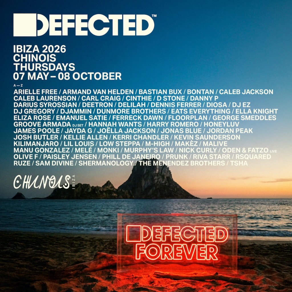 Defected has revealed the full line-up for its 2026 Ibiza season at Chinois Ibiza, taking over Thursday nights from May 7th to October 8th. Marking a defining new chapter for the label at the club in the heart of Ibiza’s Marina, walking distance from Ibiza Town. The 23-week residency brings together house music pioneers, global icons and a new generation of talent shaping the future of the genre.