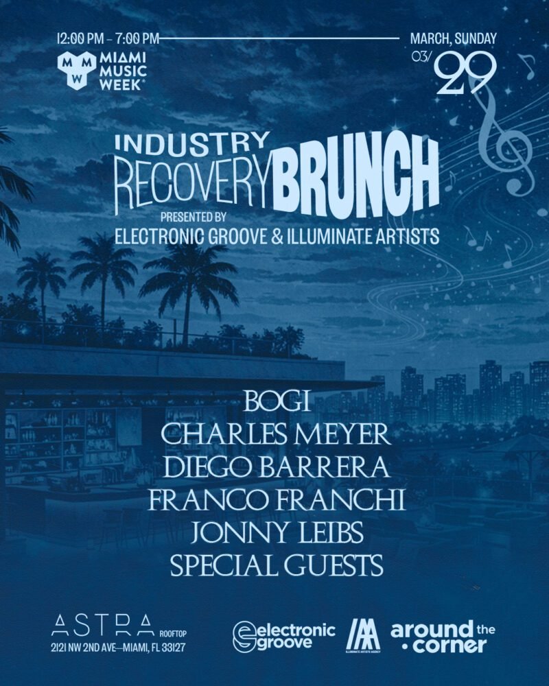 Electronic Groove and Illuminate Artists have announced the Industry Recovery Brunch, taking place on Sunday, March 29th, 2026, at Astra Rooftop. Running from 12 PM to 7 PM, the daytime event serves as a final gathering for professionals and fans during the closing stretch of 2026’s Miami Music Week.