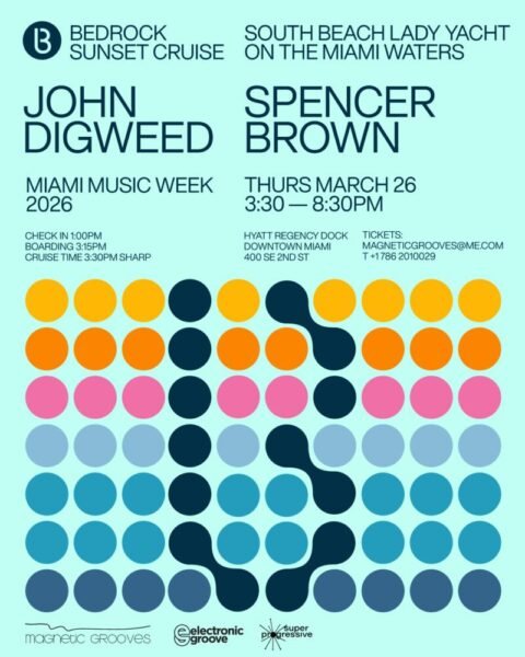 John Digweed and Spencer Brown will headline the Bedrock Cruise as Magnetic Grooves returns to open water on March 26th, 2026, during Miami Music Week.